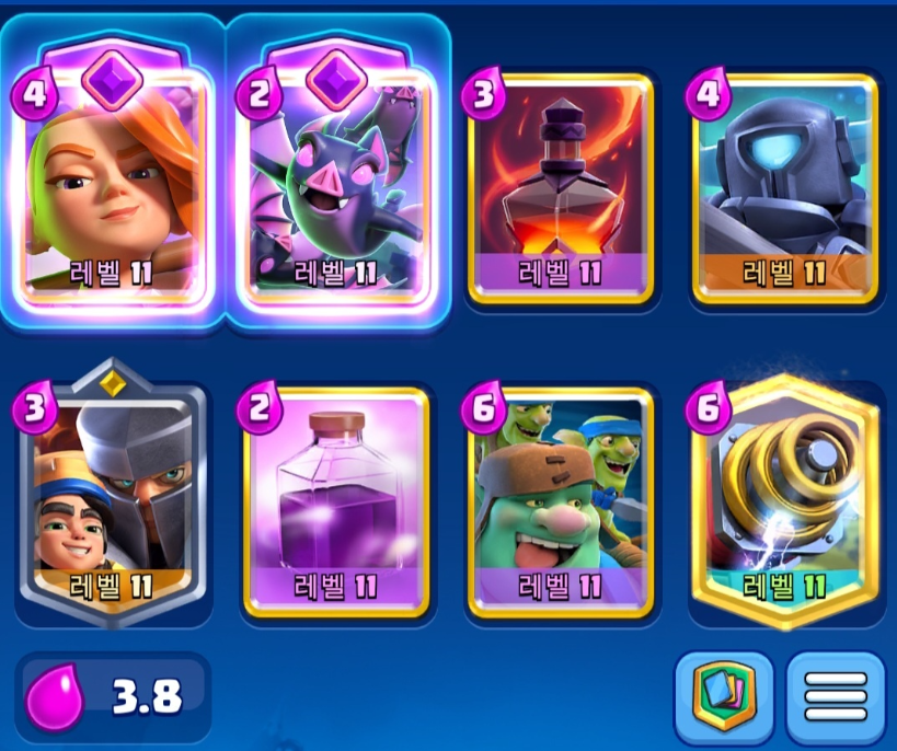 클래시로얄 ‘자고파키‘ 덱입니다. 장인 덱으로도 알려져 있으며 강한 딜량을 뽐내는 덱 중 하나입니다.